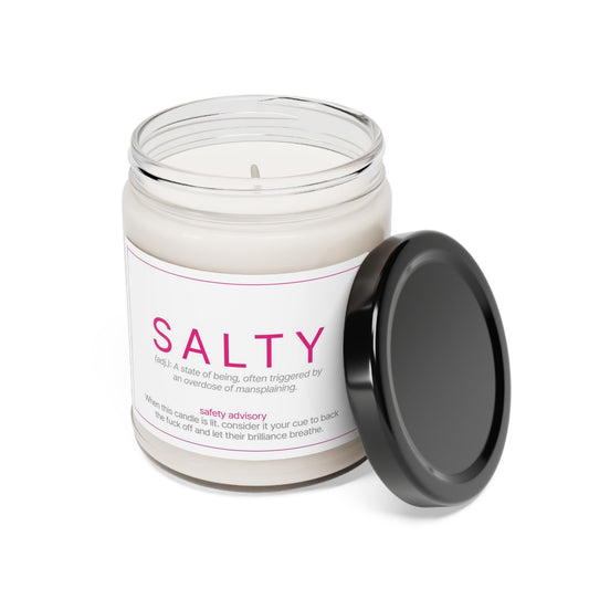 SALTY Scented Soy Candle | Dark Musk and Sandalwood | Natural | 9oz Reusable Glass Jar | Eco-Friendly | Free Shipping | Kink Play