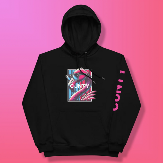 Cunty Flamingo Premium Eco Hoodie – Sustainable, Bold, and Unisex | Edgy | Sustainable Hoodie | Free Shipping | Designer Top | Cunty by design | LGBTQ+ | Eco-Friendly