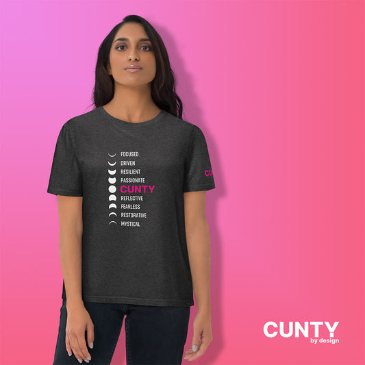Moon Phases Organic Cotton Tee – Bold, Eco-Friendly, and Unisex | Edgy | Sustainable Shirt | Free Shipping | Designer Tee | Cunty by design | LGBTQ+