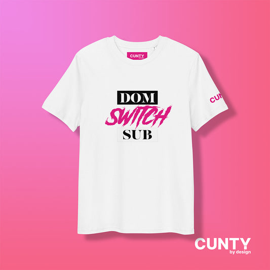 Dom, Switch, Sub Organic Cotton Tee – Bold, Playful & Unapologetic | Eco-Friendly Fashion | Queer tee | Free Shipping | Cunty by design | Unisex fit | Designer t-shirt | LGBTQ+